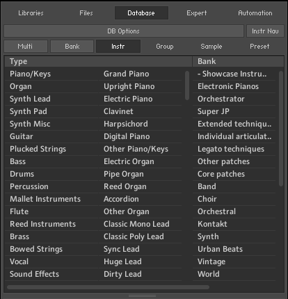 L'onglet « Libraries » est sans conteste, particulièrement utile lorsque l'on utilise une multitude de banque sons. Mais son côté pratique reste assez limité pour une raison essentielle: si l'onglet « Libraries » vous permet de trouver facilement vos sonorités par catégories, c'est hélas uniquement valable au sein même de chaque banque. Certes, Native Instruments a judicieusement intégré dans l'onglet « Database » une sorte de moteur de recherche, via lequel vous pourrez (moyennant l'utilisation de quelques tags), retrouver vos petits rapidement. Mais niveau workflow, ça reste assez fastidieux (surtout si votre temps est compté!). Bref, c'est dans ce cas de figure que « Quickload » va nous sauver la mise ! Si vous n'êtes pas encore convaincu par ses bienfaits, dites vous que ça n'est qu'une question de temps, car si l'approche est différente, sachez qu'à l'usage, elle est beaucoup plus pratique.